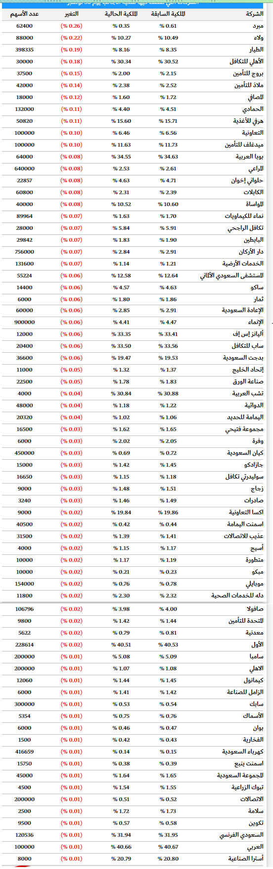 رقم العضوية : 249 | تاريخ التسجيل : 4 - 4 - 2008 | المشاركات : 216,906 | الحكمة المفضلة : Belgium | SMS : | | تغيرات ملكية المستثمرين الأجانب بالسوق السعودي ليوم الأربعاء ( أنخفضــت ) ( 71 شركه ) المصدر --- أرقام . تستطيع المشاركة هنا والرد على الموضوع ومشاركة رأيك عبر حسابك في الفيس بوك