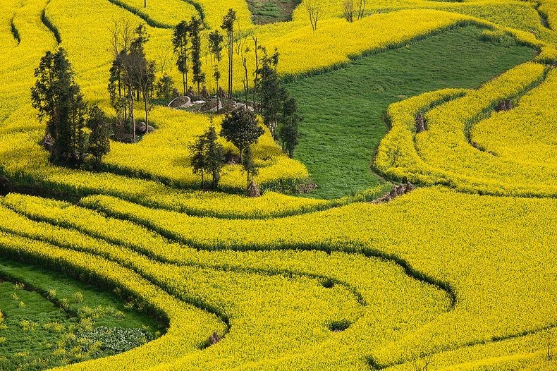 مناظر مدهشه لحقول بذور اللفت الصفراء بمقاطعة يوننان شرق الصين