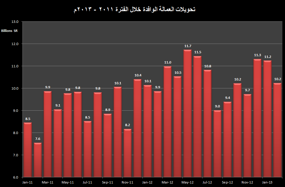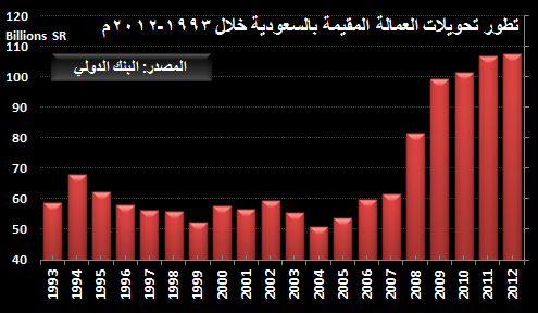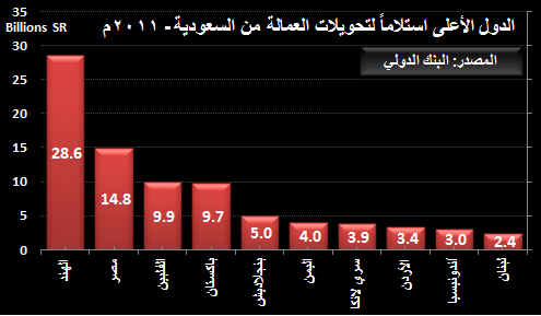 الكاتب عبد الحميد العمري واحصائيات رهيبة عن العاطلين عن العمل و الوافدين في السعودية خلال عشرين عام بلغ اجمالي تحويلات الاجانب في السعودية اكثر من 1.4تريلون ريال الهند اكثر الدول المستفيدة من الحولات ثم مصر والفليبين والباكستان اجمالي حوالات الاربع دولا اكثر من 63 مليار ريال او ما يوازي انتاج السعودية من النفط لمدة 18 يوم الحوالات الشهرية للاجانب من السعودية شهريا يفقد الاقتصاد السعودي اكثر من 11 مليار ريال سعودي السعودية تحتل المركز الثالث عالميا في تحويلات الاجانب قارنها بتحويلات الاجانب في امريكا 51 مليار دولار والدخل القومي الامريكي اكثر من 15 ترليون دولار اي ان تحويلات الاجانب في امريكا لا تتعدى 0.34% في حين تحويلاتهم في السعودية تفوق 12.9% من الدخل الوطني لاحظ نسبة البطالة للسعوديين الحاملين للشهادات الثانوية والجامعية ودرجة الماجستير والدكتوراة مع الاجانب في السعودية فوق الخط الاصفر نسبة العاطلين عن العمل حسب الاعمار معدل البطالة للسعوديين تعمد تصغير الجدول لذلك لا يراه المسئولين |