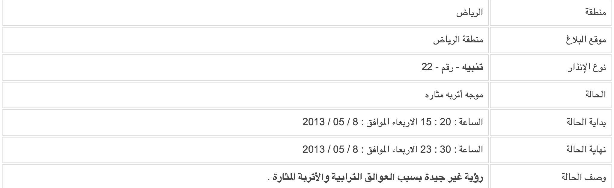 تنبيه: منطقة الرياض https://pbs.twimg.com/media/BJv6mXICYAMGO4k.jpg:large https://si0.twimg.com/profile_images...be_normal.jpeg الأرصاد وحمايةالبيئة @PmeMediacen 16m |