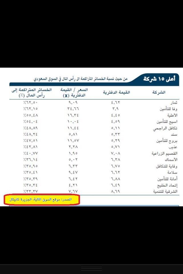 | بقايا عشق | 05-16-2013 03:01 PM | اعلي 15 شركة من حيث الخساير المتراكمة |
