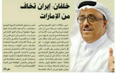 البطل ضــاحــي خــلــفــان : إيــران تــخــاف مــن الإمـــارات https://pbs.twimg.com/media/B4b7Kf3CMAAJlBX.jpg:large https://pbs.twimg.com/media/B4b7Kf3CMAAJlBX.jpg:large ألحين الإمارات اللي محتلة جزر إيران أو إيران اللي محتلة جزر الإمارات ؟ :hawamer1312 :hawamer1312 |