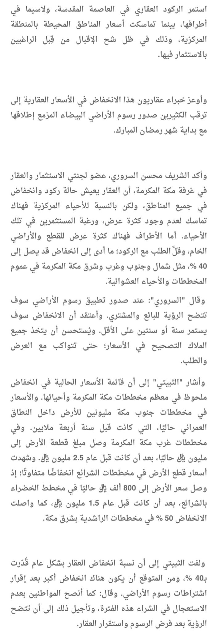 تظار تحديد رسوم الأراضي البيضاء يخفض عقار "مكة" 40%