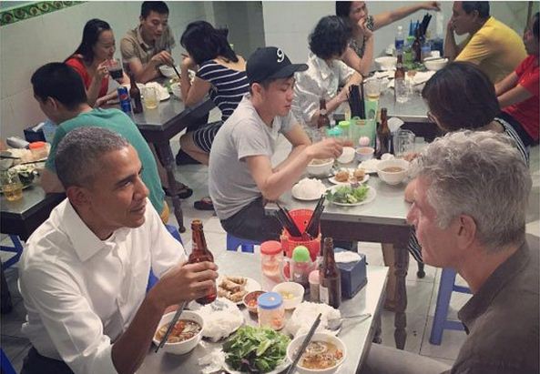 افتراضي أوباما يتناول العشاء بمطعم شعبي بفيتنام مع صديقه بـ 6 دولار فقط .. صور