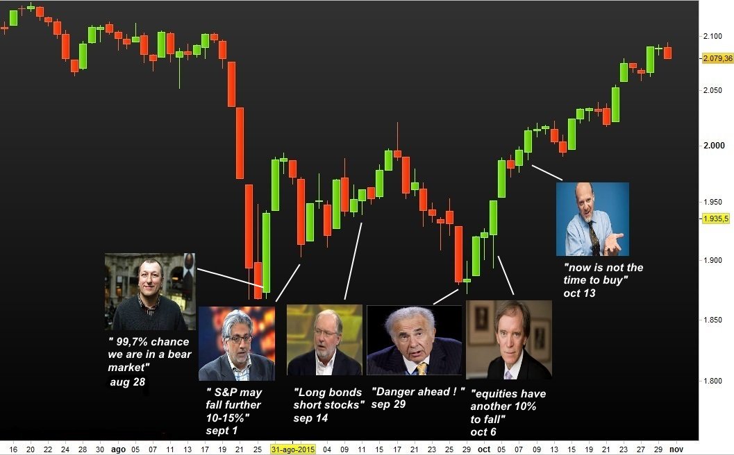 انتبه من المحلل الذي يجزم ويؤكد في تحليلاته هذه الصورة لبعض الأشخاص الأجانب قبل سنتين في السوق الأمريكي بنفس النوعيات عندنا في المنتدى: https://pbs.twimg.com/media/CS0oZE9UsAAHiYm.jpg:large لاحظ ان السوق فشلهم في كل توقع وهذا دليل ان السوق لا يستمع لأي محلل وخاصة المحللين المتأكدين من الاتجاه تعلم و طبق اللي تعلمته ولا تستمع الى احد ولك جائزتين الأولى اما تنجح وتكسب وهذا المطلوب الثانية اما تفشل وتكتسب خبرة |