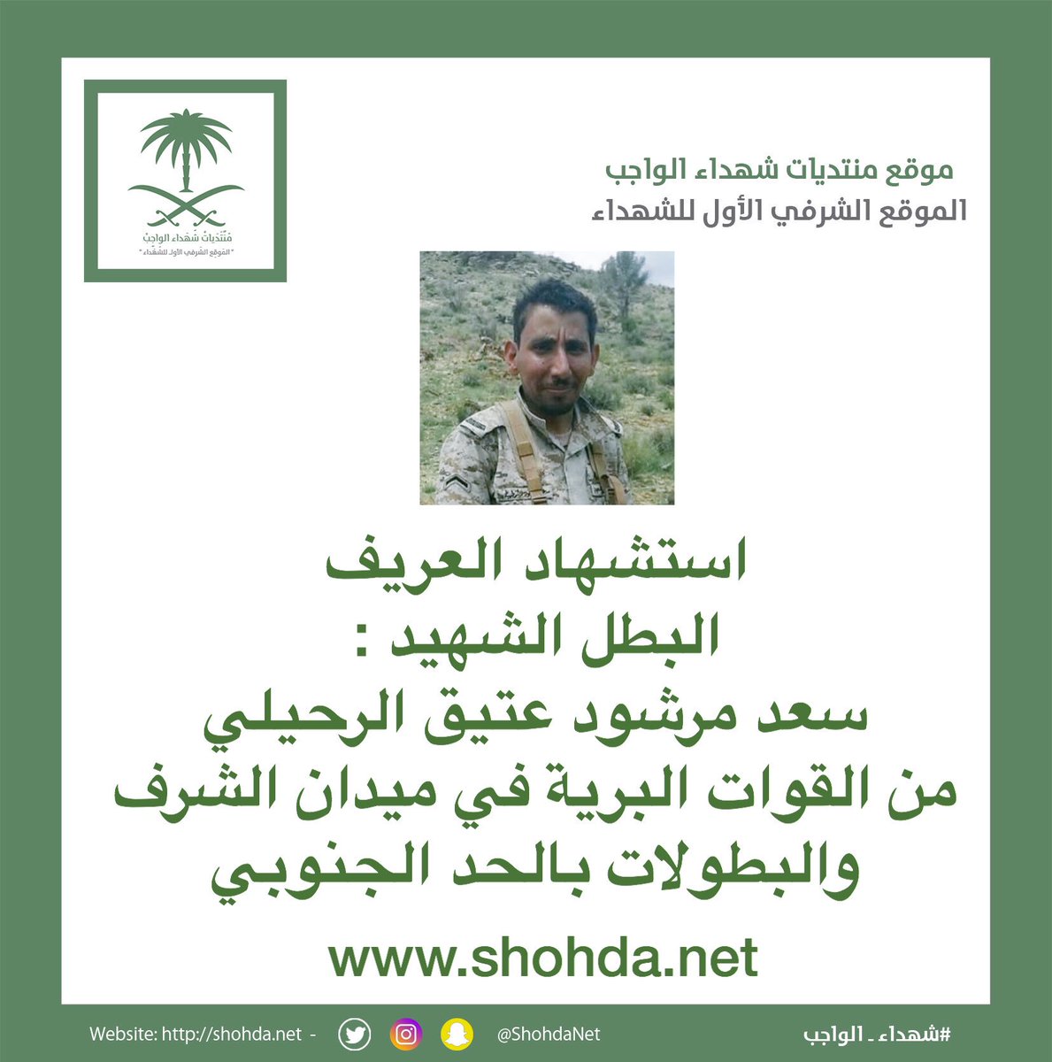 | رقم العضوية : 9523 | | تاريخ التسجيل : 23 - 9 - 2008 | | الجنس : ~ الاهلي | | المشاركات : 155,340 | | الحكمة المفضلة : Canada | | SMS : | | إستشهاد العريف سعد مرشود عتيق الرحيلي بالحد الجنوبي تستطيع المشاركة هنا والرد على الموضوع ومشاركة رأيك عبر حسابك في الفيس بوك
