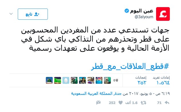 رقم العضوية : 9523 | تاريخ التسجيل : 23 - 9 - 2008 | الجنس : ~ الاهلي | المشاركات : 155,340 | الحكمة المفضلة : Canada | SMS : | | القبض على عدد من المغردين الذين يدافعون عن قطر تستطيع المشاركة هنا والرد على الموضوع ومشاركة رأيك عبر حسابك في الفيس بوك
