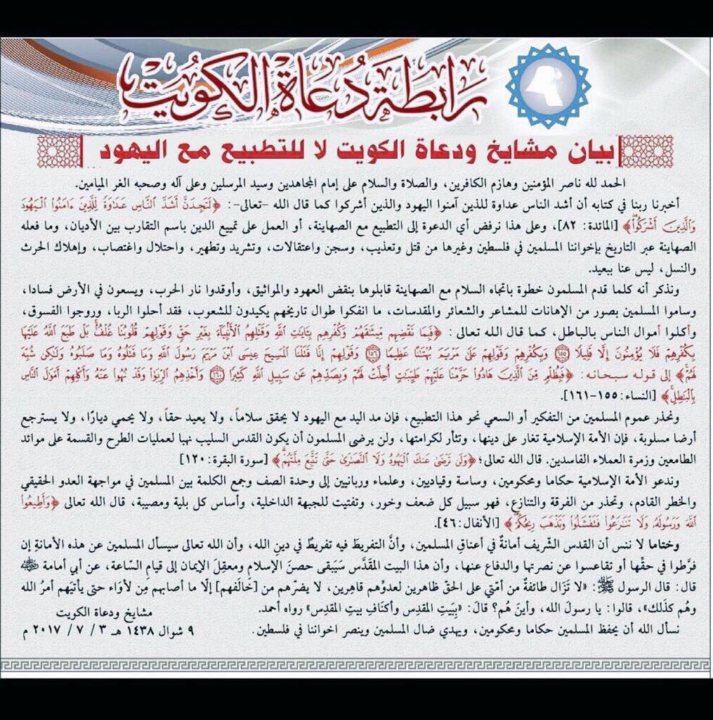 | بقايا عشق | 07-07-2017 11:17 AM | التطبيع مع اليهود بيان من دعاة الكويت |