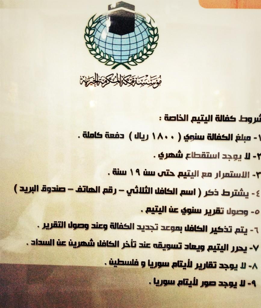 ( كفالة يتيم سوري ) السنة بـ 1800 ريال فقط لدى مؤسسة مكة المكرمة السلام عليكم ورحمة الله وبركاته ..... قال تعالى : (ياأيها الذين آمنوا اتقوا الله ولتنظر نفس ما قدمت لغد) عن سعد بن أبي وقاص -رضي الله عنه – قال : قال رسول الله صلى الله عليه وسلم(( أنا وكافل اليتيم في الجنة هكذا ، وأشار بالسبابة والوسطى ،وفرج بينهما )) . رواه البخاري ( كفالة يتيم سوري )… السنة بـ 1800 ريال فقط لدى مؤسسة مكة المكرمة https://pbs.twimg.com/media/A_WfHwvCUAAECPD.jpg:large |