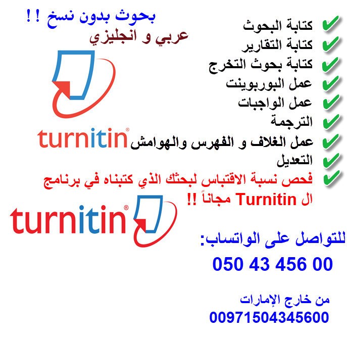 خدمات بحوث جامعية في الامارات 0504345600 خدمات بحوث جامعية في الامارات 0504345600 نقدم خدمات عمل البحوث الجامعية بالعربي و بالإنجليزي https://i.suar.me/p770q/l خدمات كتابة البحوث التي نقدمها تشمل على سبيل المثال لا الحصر تخصصات القانون و العلاقات العامة و الموارد البشرية و الإعلام و إدارة الأعمال و تخصصات كثيرة جداً أخرى. كما نقوم بالتعليق على أحكام قضائية و عمل دراسات حالة و حل اسايمنتات و بروجكتات وبدون نسبة اقتباس نقوم بفحص نسبة النسخ على برنامج التورنت ان Turnitin للتأكد من عدم وجود تشابه او انتحال للاستفسار أو التواصل: واتساب 0504345600 أو +971504345600 او التواصل على الايميل: tahafahed1@gmail.com |