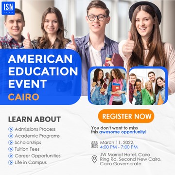 تعرف على معرض التعليم الأمريكي المنعقد في مصر القاهرة ، مصر (11 مارس) هل تخطط للدراسة في الولايات المتحدة؟ إذا كان الأمر كذلك ، تعال واحضر معرض التعليم الأمريكي الذي سيعقد في القاهرة ، مصر هذا الشهر! يتطلع مسؤولو القبول من أفضل الجامعات الأمريكية إلى مشاركة كل ما تحتاج لمعرفته حول التقدم إلى مؤسساتهم وحضورها. يتضمن ذلك تفاصيل حول برامج التعليم من إدارة الأعمال إلى الهندسة ، وعملية القبول ، والمنح الدراسية على أساس الجدارة ، ومتطلبات أخرى للتسجيل. سيتحدثون أيضًا عن فرص العمل والدراسة من خلال برامج STEM وحتى فرص العمل بعد الانتهاء من الدورة / البرنامج الذي اخترته. سيحصل الحاضرون أيضًا على فرصة لإجراء مناقشة وجهاً لوجه مع مسؤولي القبول من الجامعات المشاركة ومعرفة المزيد حول عملية القبول. ستقام الندوة في فندق جي دبليو ماريوت القاهرة يوم 11 مارس 2021 من الساعة 4:00 عصرًا حتى 7:00 مساءً. آباء الطلاب أيضا مدعوون للانضمام. هذه فرصة رائعة لا تريد أن تضيعها! الفتحات مجانية لذا قم بالتسجيل الآن من خلال هذا الرابط: https://tinyurl.com/americaneducationexpo-cairo https://i.suar.me/q7Q2g/s |