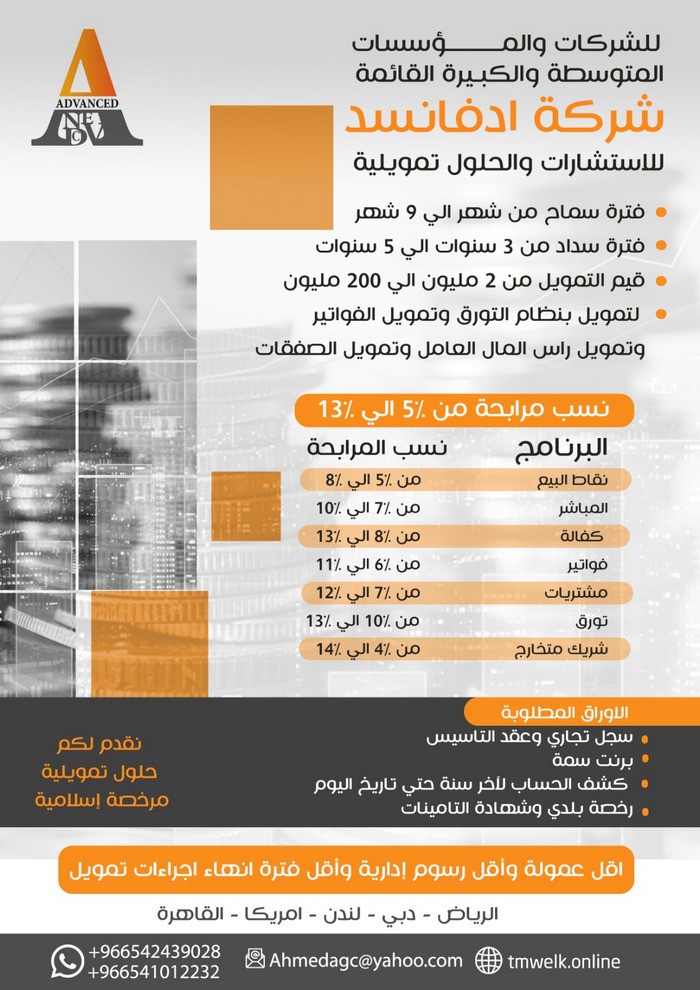 قروض وحلول تمويلية شرعية اسلامية مرخصة للشركات والمؤسسات قروض وحلول تمويلية شرعية اسلامية مرخصة للشركات والمؤسسات لاصحاب المصانع واصحاب المراكز الصحية والمستشفيات والمشاريع الطبية والصحية لاصحاب الصيدليات ومستودعات الادوية وللشركات الزراعية والسياحية وشركات تقنية المعلومات والذكاء الصناعي والبرمجيات ----------------------------------------------------------------------- تمويل يصل الي 200 مليون بدون ضمانات باطول مدد سداد واقل نسبة مرابحة فائدة وبدون رهن فقط كشف حساب واوراق تجارية https://i.suar.me/jMG6v/l |